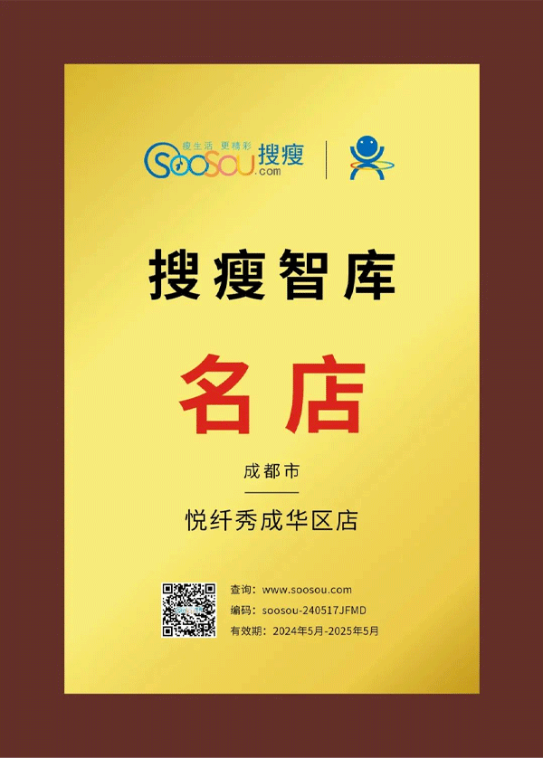 經過平臺嚴格的考察和甄選,悅纖秀形體美容連鎖機構入選搜瘦智庫名店。