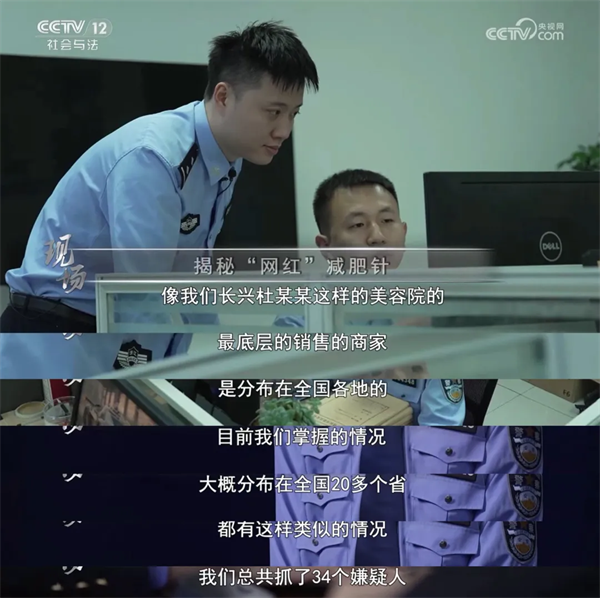 6月7日,中央廣播電視總臺社會與法頻道(CCTV-12)《現(xiàn)場》欄目以《揭秘“網(wǎng)紅”減肥針》為題,報道了長興法院審理的一起妨害藥品管理罪案。