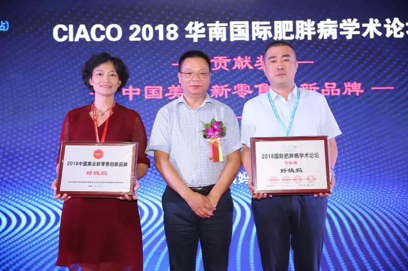 現(xiàn)場授予深圳好姨媽品牌管理有限公司 —— 2018中國國際減肥大會CIACO2018華南國際肥胖病學(xué)術(shù)論壇貢獻獎 、2018中國美業(yè)新零售創(chuàng)新品牌,感謝好姨媽品牌對本屆論壇的大力支持!
